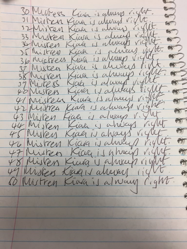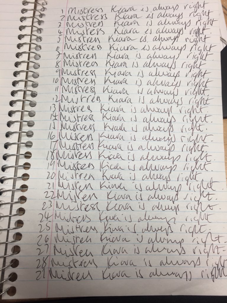 Of course, all stars fall… Mistress’s sole sniffer seems to be having some issues lately with the aforementioned pride from the poems he wrote Me. So, unfortunately, I was forced to teach sole sniffer a lesson. It started with lines – 50 lines of the phrase, “Mistress Kiara is always right.”